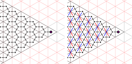 As a sample, the following pictures show the weak Bruhat order graph and the Bruhat closure graph for the coset A2aff/A2fin: